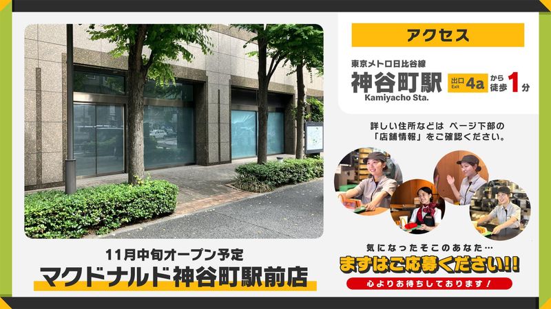 勤務地 | マクドナルド神谷町駅前店 105-0001東京都港区虎ノ門5-2-5 神谷町MTコート |