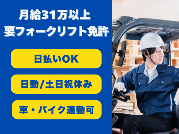 職種/仕事内容 | 残業ほぼ無し/土日祝休み/昇給の可能性あり/No.36849-sgh 商品の入出荷作業を行うフォークリフトオペレーター 神奈川県相模原市中央区 派遣社員 求人の特徴 固定シフト制 土日祝休み 完全週休二日制 平日のみ OK スタートアップ研修あり 交通費支給 有給休暇あり 40 代も応募可 50 代も応募可 ブランク OK フリーター歓迎 主婦・主夫歓迎 子育て世代歓迎 学歴不問 未経験者歓迎 経験浅め歓迎 勤務開始時期調整 即日勤務 OK 友達と応募 OK 履歴書不要 職場見学可 スニーカー OK 制服あり 髪型・髪色自由 車通勤 OK 日払い OK 残業手当あり 週払い OK 業務内容 ========================== 日勤のみで月31万円以上♪ フォークリフト免許をお持ちであれば どなたでもご応募いただけます! ========================== フォークリフトを使用した出荷に伴う作業をお任せ予定です。 ※カウンター&リーチの両方を使用します。 【お仕事内容】 ■取り扱う物は建設・自動車関連のパーツや小型部品になります。 ・トラックから部品の積み下ろし作業(カウンターフォークを使用) ・搬入部品の仕分け・検品作業 ・商品化された部品を倉庫内に格納作業(リーチフォークを使用) ※オーダーピッカーを使っての格納作業があり、高所(9~10m)での作業が発生します。 【未経験者OK】 入社後に1ヶ月程度の研修があり、 イチからしっかりと業務の流れを覚えていただけます。 【ここがポイント】 ■高時給で稼げる ■日勤のみ ■土日祝休み/週5日勤務 ■長期就業可 ■昇給の可能性あり ■作業服貸与 ■出張面談対応 ■職場見学可 ■車通勤OK・バイク通勤OK・自転車通勤OK ■無料駐車場・無料駐輪場完備 など ※当社が雇用する派遣スタッフとして派遣先で勤務いただきます 職種 商品の入出荷作業を行うフォークリフトオペレーター 雇用形態 派遣社員 勤務体系 固定時間制 勤務先事業内容 人材総合サービス事業 |