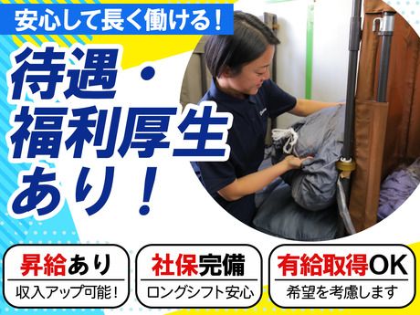 待遇・福利厚生 | 【保険制度】 雇用保険、労災保険、健康保険、厚生年金 【福利厚生】 待遇・福利厚生 【福利厚生】 【安心の福利厚生】 ――――――――――――――― ■社会保険完備 ■長期休業収入補償保険 (※社会保険加入者のみ/満60歳まで) ■労災補償上乗せ保険 (※労災保険加入者のみ) ■インフルエンザ予防接種 ■制服貸与 ■マスク支給 ■手袋支給 ■車通勤OK 【お給料にプラスの手当】 ――――――――――――――― ■昇給あり ■残業手当 ■交通費規定支給 【お休み・休暇制度】 ――――――――――――――― ■有給休暇 (入社6ヶ月経過後、最大10日付与) ■特別有給休暇 ■時間単位有給休暇 ■積立有給休暇 ■産休・育児休暇 ■通院休暇 (妊産婦健診受診時) |