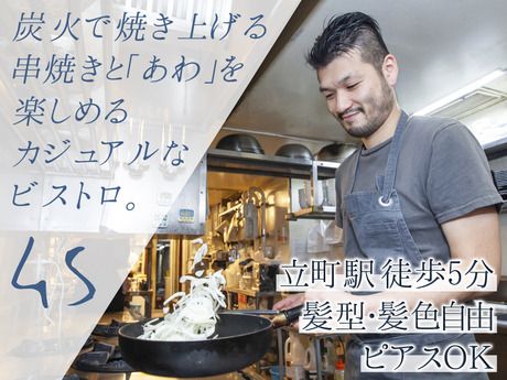 職種/仕事内容 | 仕事内容 【キッチンスタッフのお仕事】 ・盛付 ・仕込み ・調理補助 など どの店舗も素材にこだわっているので、 調理方法や素材に関する知識が増えますよ! ただ料理を提供するだけではなく、 意外な工夫やサプライズなどにより 沢山のお客様を笑顔にしていきませんか? 【未経験でも安心のワケとは?】 先輩達の多くが未経験スタート! 初めてで不安...な気持ちがよ~くわかります。 盛付のコツ・野菜の切り方など、 簡単なことから少しずつ 丁寧に指導していくのはもちろん、 先輩スタッフが近くでフォローします! 《一緒に働くスタッフは?》 系列店も含め、10代,20代,30代,40代の 学生、フリーター、主夫・主婦パート活躍中!! 初めてのアルバイトはもちろん レストラン,カフェ,喫茶店,居酒屋などの 飲食店経験者、学校給食,社員食堂などでの 調理・調理補助経験者歓迎!! 《嬉しいメリット多数あり!》 \お給料+αの魅力をCHECK!/ *従業員割引30%OFF *友達紹介制度2万円 *週払いOK *交通費支給 *食事補助・まかないあり *正社員登用あり *髪型・髪色自由 など 【45bisあわ】 ~スパークリングと美味しい串焼~ 炭火焼き・やきとりと泡ものドリンクを揃えた、 カジュアルなビストロです。 1Fはスタンディングフロア、2Fにはテーブル席も ご用意しており最大22名様までご利用頂けます。 |