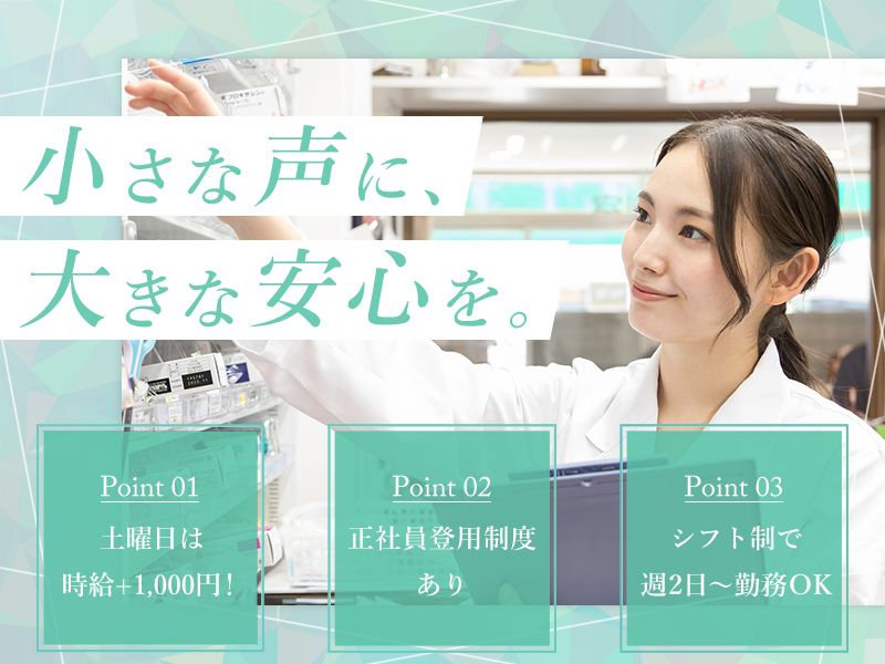 職種/仕事内容 | 仕事内容 〇●‥‥‥‥‥‥‥‥‥‥‥‥ 週2日~1日3時間~OK! 資格を活かして 無理なく働きませんか? ‥‥‥‥‥‥‥‥‥‥‥‥●〇 〇●‥‥求人のPOINT‥‥‥ ✅シフト制で柔軟な働き方が叶う♪ ✅日祝定休&基本的に残業なし ✅時給2,300円~ ✅随時昇給+業績賞与あり! ✅穏やかで定着率の高い環境 ✅15〜30年勤務の社員在籍 ‥‥‥‥‥‥‥‥‥‥‥‥●〇 ●〇業務内容〇● 投薬 監査 患者対応 調剤 など 在宅業務については 施設と個人宅にて数件の対応があります。 【 教育制度 】 オンライン講習の費用を負担! 働きながら着実に成長できる環境です。 |