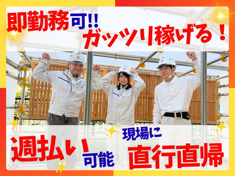 職種/仕事内容 | 仕事内容 ✨ オススメポイント ✨ ✅入社祝い金:10万円(90日勤務後) ✅友達紹介制度:15万円(90日勤務後) ✅最短3日での入社も可✨即勤務OK♪ ✅仕事量が豊富で収入も安定 天候に左右されないので安定して稼げる◎ ✅タトゥー・ピアス・ネイル・髭OK(規定) 「働きやすさ」を大切にしているので、 面接の時もお仕事が始まってからも、 どんなことでもお気軽にご相談ください✨ ▼▽▼✨電話応募も大歓迎✨▼▽▼ TEL【03‐5621‐2212】まで! ・・・・・・・・・・・・・・・・・・・・ ✨ お仕事内容 ✨ 建設現場にて ✅傷や汚れを防ぐ養生材をテープで貼る ✅窓を拭く など シンプルな作業をお任せします!! 「 おはようございます!! 」 元気な挨拶で気持ちよく一日をスタート♪ コツコツ・モクモク作業がで簡単安心◎ 必要な知識やお仕事の流れは 先輩スタッフが丁寧にお教えします✨ あなたの経験を活かして活躍してください! ・・・・・・・・・・・・・・・・・・・・ ✨ 1日の流れをご紹介 ✨ 朝礼と作業確認ミーティング。 その後作業開始(基本的に直行直帰) ▼10時から15分程の休憩を挟み作業再開 ▼1時間の昼休憩 ▼15時から15分程の休憩を挟み作業再開 ▼17時になったら作業を終え現場から撤収 ・・・・・・・・・・・・・・・・・・・・ |