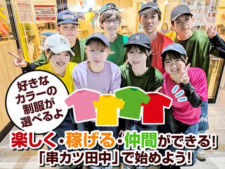 職場環境・雰囲気 | 職場環境 【従業員構成】 <楽しさがいっぱいの串カツ田中> ↓↓↓↓↓↓↓↓↓↓↓↓↓↓↓↓ 有名人・有名企業とのコラボやネーミングライツなどTVやSNSでもバズっています。 お客様を楽しませることをいち早く取り入れる企業・店舗として知名度・人気バツグン! 「串カツ田中」なら、きっと楽しくバイトできますよ! <「KTリーグ」開催中!> 直営店舗がKT1・KT2・KT3の3つのリーグに分かれ、 各リーグの一位を目指し、さらに上位リーグに昇格できるよう盛り上がっています! お客様からのご意見や売上、社内で設けた特別な審査基準によって順位が決定し、 福利厚生やインセンティブに反映されます。 こんな環境なら働き甲斐バッチリ! ちなみに!KTリーグSEASON1の優勝店舗は「神田店」 ●1泊2日の大阪研修旅行がプレゼントされました! 【職場の雰囲気】 個性が活かせる 立ち仕事 アットホーム お客様との対話は多い 初心者活躍中 力仕事が少ない 自分の都合に合わせやすい 知識、経験不要 |