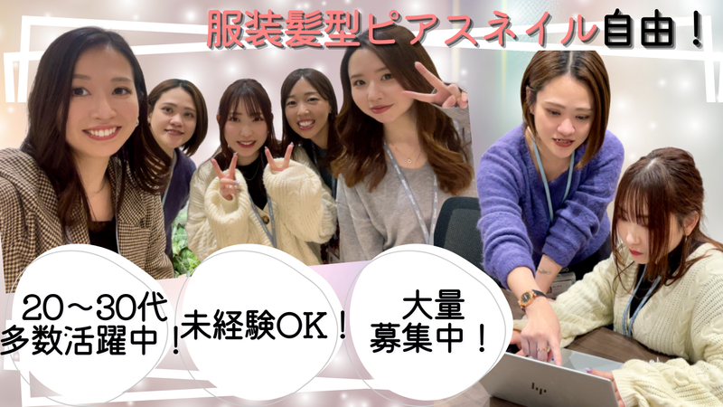 対象となる方 | 求めている人材 ================= 未経験から誰でも始められる! ================= ■20代30代の男女ともに活躍中! ■事務未経験者歓迎 ■即戦力として活躍できるPCスキルをお持ちの方。 (Excel・Word・Mail) ■コールセンター経験者大歓迎 <歓迎条件> *同業他社での勤務経験者 ―――――― こんな方歓迎 ―――――― *安定企業で働きたい *プライベートも大事にしながら働きたい *安定した収入が欲しい *自分なりの働き方をしたい |