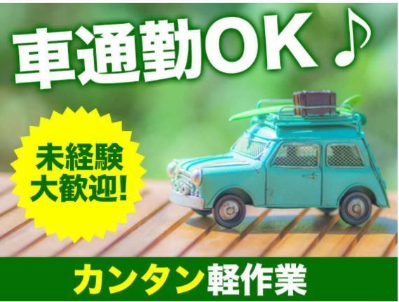 職種/仕事内容 | 仕事内容 【工場内軽作業】 お仕事は超カンタン 製品に白いラップを貼って、形に合わせてカッターで切って、空気を抜くだけ 4人程度で作業をするので1人の負担も少なく働きやすいお仕事です。 待機時間中も時給発生 作業場所はこんな環境です ・冷暖房完備で快適 ・社員食堂あり(定食410円、カレー310円の安さが人気) ・外で休めるテラス席有 ・個人ロッカー・更衣室あり ・作業服や安全靴は貸してもらえる ・車通勤OKで駐車場もある 働き方の特徴 ・年間休日125日 ・基本は土日祝休み ・忙しい時期だけ土曜出勤あり ・落ち着いている時期は長めのお休みや週4勤務になることも こんな人に向いています ・新車を見るとワクワクする ・チーム作業が好き ・コツコツした作業が得意 ・キレイで働きやすい環境がいい ・プライベートも大事にしたい |