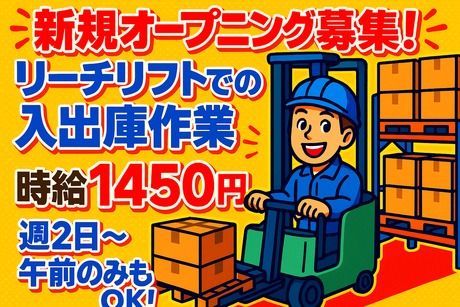 職種/仕事内容 | 仕事内容 ■未経験OK!カンタンなピッキング作業スタッフ募集! 脱脂粉乳を扱う倉庫で、リーチリフトによる入出庫・ピッキング・仕分け作業をお任せします。 常時リフト作業で手積み作業は一切なし! 3段ラックでの効率的な作業です。 <お仕事内容> ・フォークリフト(リーチタイプ)での入出庫作業 ・出荷伝票に基づくピッキング・仕分け ・商品の検品・棚入れなど 扱うのは脱脂粉乳(粉製品)で、重量物の手作業ナシ! リフトに乗りっぱなしでムリなく働けます。 【ここがポイント】 ◎ 新規オープニング募集!同期スタートで安心 ◎ 手積みなしで身体への負担も少なめ ◎ リーチリフト常時稼働でスキルを活かせる ◎ 週2~OK!短時間・フルどちらも選べる柔軟シフト ◎ 高時給1450円+交通アクセスも便利! |