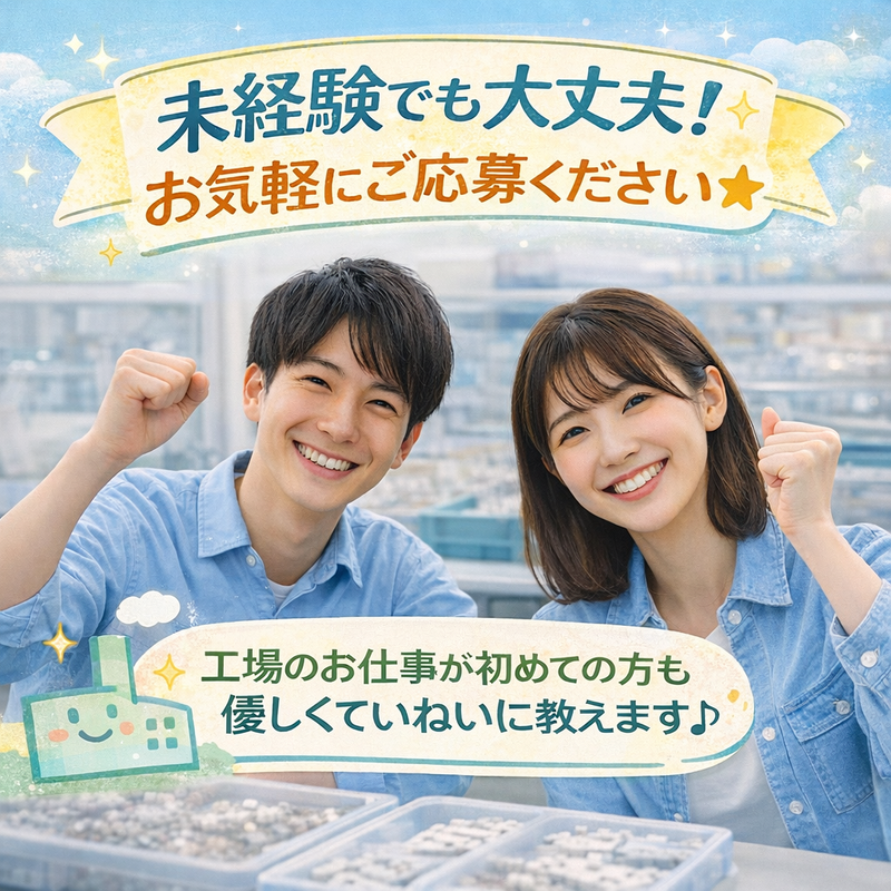 対象となる方 | 求めている人材 モノづくりに興味がある方、静かな職場で集中したい方歓迎。未経験でも安心。 |