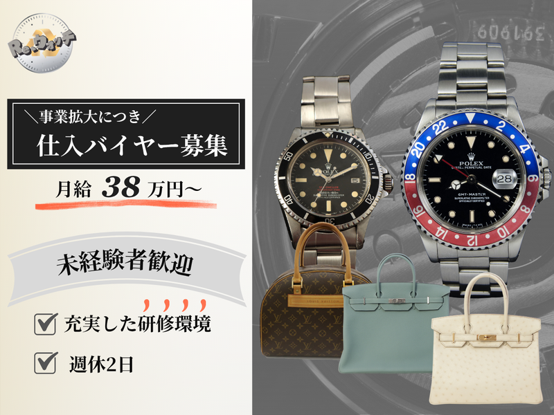 職種/仕事内容 | 仕事内容 ◤ ̄ ̄ ̄ ̄ ̄ ̄ ̄ ̄ ̄ ̄ ̄ ̄ ̄ ̄ ̄ ̄◥ 時計・ブランド品のバイヤー募集 ⏩未経験歓迎!専門的な知識も不問 ⏩高月給38万円以上でスタート! ⏩年間休日120日以上で働きやすい◎ ⏩憧れの高級ブランドを扱うお仕事 ⏩人気のバックオフィス業務 ◣________________◢ 【あなたにお任せする業務】  ̄ ̄ ̄ ̄ ̄ ̄ ̄ ̄ ̄ ̄ ̄ ̄ ̄ ̄ 業容拡大に伴い、高級腕時計など 仕入れ部門のバイヤーを募集いたします。 ロレックスやパテックフィリップなど 高級ブランド時計を仕入れ、 社内外の職人の手により価値を蘇らせ、 市場に送り出すお仕事です。 毎月億単位の在庫予算を運用しながら 効率的に収益をあげ、 社会に貢献していくビジネスを ともに拡げていきましょう。 ╭━━━━━━━━━━━╮ ✨ アピールポイント ╰━━━v━━━━━━━╯ ✅安定企業の中心事業を担います  ̄ ̄ ̄ ̄ ̄ ̄ ̄ ̄ ̄ ̄ ̄ ̄ ̄ ̄ ̄ ̄ ̄ 品川区大崎の街で創業60年の当社。 リユース事業はスタート4年目の まだまだ新しい事業ですが、 わずか3年で10億円規模の売上を達成する 中心事業となりました。 さらなる業容拡大のために求人募集します。 ✅業界の知識・経験は一切不問  ̄ ̄ ̄ ̄ ̄ ̄ ̄ ̄ ̄ ̄ ̄ ̄ ̄ ̄ ̄ ̄ この業界はほとんどの方が未経験者です。 ノウハウをチームで共有して 業務遂行しておりますので、 未経験の方も安心して 仕事に取り組んでいただけます。 |