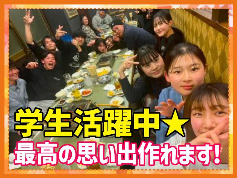 職種/仕事内容 | 仕事内容 ★【土日祝限定】募集 ★週1日~OK(「土曜日だけ」「+α平日も」OK) ★そば飯などリクエストOKのまかない付き♪ ★日祝入れる人は時給1250円~! ★1日4時間半~・長時間の勤務もOK! ★駅チカ★給与手渡し ★友達一緒に応募OK ★社員登用あり ____________________ 【仕事内容】 料理提供・ドリンク作りなど ⇒慣れるまで先輩がついてお教えします! キッチンもできると時給100円UP▶時給1300円~(*'▽')v 「ホールだけしたい!」もOK! - ✅入ってきたら・・・ (1)店の雰囲気になれる→先輩と一緒に行動(一連の流れを覚えていただきます!) (2)場所確認、テーブル番号確認→皿洗い(学校や家族の話などしながら、徐々に緊張をほぐしていきましょう!) (3)出来た料理を見ながら、商品名を覚える ★放置されることは絶対にありません★ 基本学生の先輩から教えてもらえるので、質問しやすい環境です◎ ※一回の人数体制:6人(そのうち学生4人) →困ったことがあっても他のスタッフにすぐに聞ける体制が整っているので、安心して何でも聞いてくださいね! ________POINT_________ ✅仕事を通して最高の思い出作れます! ◎とにかく仲がいい◎ バイト以外で遊んだり、旅行に行ったりしてます(>▽<) アルバイト中も、【下の名前で呼び合っているほど】仲良しです! 就職などで辞めたスタッフも、大型連休に手伝いに来てくれたり、新年会に参加したり、食べに来たり…結婚の報告とか出産の報告をしてくれるスタッフもいます(笑) ◎まかないあり(全スタッフ対象)◎ 1人暮らしの学生さんに大好評♪ そばめしなど、メニューの中からリクエストOK、お任せもあります! ▼他にもこ~んなメリットたくさん ◎給与手渡し◎ ◎友達と応募OK(今のスタッフにもいます)◎ ◎キッチンもできると給与UP◎ ◎相談お気軽に!社員登用あり◎ - ★姉妹店「Cafe Bar サムサム」もオープニングスタッフ同時募集! 詳細はお気軽にお問い合わせください! |