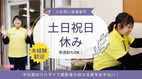 職種/仕事内容 | 仕事内容 <お仕事内容詳細> 病院退院後の脳梗塞や脳出血後遺症の回復に向けたリハビリがメインの施設です。 ・職員のマネジメント ・施設運営 ・集団リハビリ実施(体操指導) ・個別リハビリ実施(ウォーキングレッスンやADL訓練、油圧式マシンを使用) ・個別機能訓練計画書及び運動器機能向上計画書作成 ・初回利用のご利用者さまの初期評価 ・見学対応 など <アピールポイント> 身近な人たちがひとりでは前を向けず困ったとき、何かしらの形で手を差し伸べられる企業でありたい、グループ内のどこかの事業でその「コマッタ」を解決できるようになりたい、という想いで、たくさんの拠点をつくり、たくさんの事業を生み出しています。 |