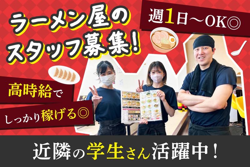 対象となる方 | 求めている人材 <土日祝に働ける方は優遇> バイトデビューを応援! ブランク有のパートさんもOK! 未経験からスタートOK☆彡 ラーメンが好きな方! <高校生、大学生、専門学生も歓迎> ・10~20代の若手スタッフ活躍中 ・西南や中村の学生さんが多数在籍! ・Wワークで副業とかけもちも可 |