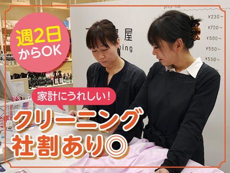 職種/仕事内容 | 仕事内容 扶養内で働く主婦(夫)さんや40~50代のスタッフさんも活躍中! 【具体的な仕事内容】 ・クリーニング受付業務 (店頭にてお客様の服を預かる) ・レジ操作 ・商品のお渡し など ※コミュニケーションをとることが 好きな方にピッタリ! お客様から「ありがとう」と お言葉を頂いた時は やりがいを感じられますよ! 関西で150店舗以上を展開する大手で働けるチャンス! 創業から50年以上。会員数は30万人でお客様満足度は96%と 老舗ならではの実績と技術に多くの評価をいただいております。 プライベートでも役立つ知識がいっぱい! タグの意味から衣類の素材の質など 今まで知らなかったことが沢山! 「知識がない」という方もご安心下さい! 先輩達がイチから丁寧にサポートします。 そんな当社で未経験からプロの技術を身に付けてみませんか? 未経験から始めたスタッフも多数活躍中! イチから丁寧に教えるので初めての方も 安心して勤務スタートしていただける環境です! 先輩のしっかりしたサポートもありますし 分からないことはすぐに聞いていただける 環境なので大丈夫! まずは簡単なことから覚えていただき 少しずつ慣れてくださいね! |