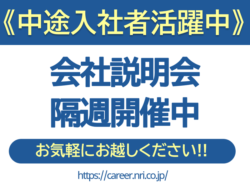 勤務地 | 株式会社野村総合研究所 東京本社 100-0004東京都千代田区大手町1-9-2大手町フィナンシャルシティグランキューブ |