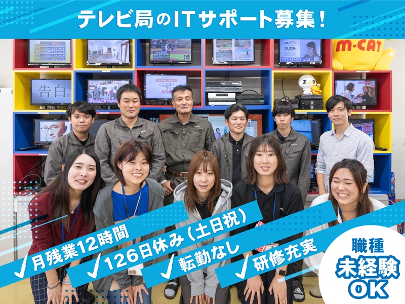 職種/仕事内容 | 仕事内容 未経験から技術職にチャレンジしませんか? 「営業職からキャリアチェンジしたい」 「地元に戻って、安定した仕事に就きたい」 「手に職をつけて長く働きたい」 そんな方にぴったりの職場が、ここにあります。 株式会社MCAT(旧:三原テレビ放送)は、 広島県三原市・世羅町に根差したケーブルテレビ局。 地域の通信インフラを支えるネットワークエンジニアとして、 未経験からでも安心してスタートできる環境を整えています。 -------------------- ⭐働きやすさのそのワケは・・・・ -------------------- ✅ 残業少なめ×みなし残業なし 月平均残業時間は4時間程度。 ほぼ定時退社が可能です。 みなし残業制度はなく、残業代は法定通り支給されます。 ✅ 完全週休二日制(土日祝)+年休126日 お盆・年末年始休暇あり。 土日祝に出勤がある場合は必ず振替休日を取得。 平日に振替を取って連休にする社員も多数! ✅ 未経験歓迎&研修充実 ネットワークの基礎から、 地域インフラの運用まで丁寧にレクチャー。 IT・通信業界経験者は即戦力として活躍可能! ✅ 地域密着×社会貢献 地域の通信環境を支えるやりがいのある仕事。 住民の安心・安全な暮らしを技術で支えます。 -------------------- このように働きやすい条件が充実✨ 未経験のアナタもぜひ挑戦してみませんか♪ -------------------- 【具体的な仕事内容】 地域のケーブルテレビ・インターネットサービスを 支えるネットワークエンジニア業務です。 ・お客様宅の機器設定・サポート ・通信設備の点検・保守 ・ネットワークの運用・管理 ・新サービス導入の技術支援 など ※専門的な業務は、段階的にお任せします。 -------------------- 【3ヵ月後は社員登用も♪】 入社3か月で正社員登用のチャンスあり。 登用後の給与は面談後にご案内します。 昇給・賞与・各種手当で長く働ける環境です。 ・昇給あり(前年度実績:月あたり3.00%) ・賞与年2回(前年度実績:計4.4ヶ月分) 資格手当・家族手当・住宅手当など福利厚生も充実! -------------------- 【MCATの魅力って?】 ・地域密着であたたかい社風 ・社内外の研修が充実 ・未経験でも安心してスタートできる ・残業少なめで働きやすい ・福利厚生が充実 【MCATをひと言でいうと?】 ・地域に愛される会社 ・社員にやさしい会社 ・安定して長く働ける会社 -------------------- 【よくあるご質問(Q&A)】 Q. 未経験でも応募できますか? A. はい、未経験歓迎です。 ネットワークや通信の知識は入社後に学べます。 Q. 転勤はありますか? A. 基本的にはありません。 |