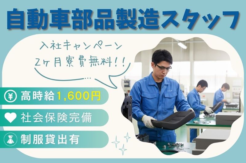 職種/仕事内容 | 仕事の内容 \✨未経験歓迎!自動車部品の製造スタッフ✨/ 自動車のシートに使われるウレタン部品の製造・検品作業。 マニュアルに沿って確認するだけの簡単な作業なので、未経験の方でも安心してスタートできます! 【具体的な業務内容】 ・完成したウレタンシートパッドを手作業で取り出す ・マニュアルに沿って目視で不具合をチェック ・資材(クリップ/ワイヤー)取り付け作業 ・製品(スラブ)貼付け作業 ・製品のバリ取り補修作業 【✨ココが魅力!✨】 ✅高時給1600円!月収31万円以上も可能 ✅ワンルーム寮完備!住まいもサポート ※2ヶ月寮費無料※ ✅即日払い・週払いOK!急な出費も安心 ✅車・バイク通勤OK!交通費支給あり ✅残業少なめ!プライベートも充実 ✅友達応募OK!一緒にスタートできます 【こんな方におすすめ】 ・未経験から製造業にチャレンジしたい方 ・コツコツと作業を進めるのが好きな方 ・体を動かすことが好きな方 ・安定した職場で長期的に働きたい方 |