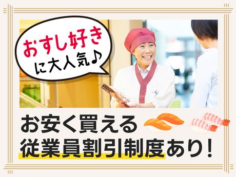 対象となる方 | 資格 未経験OK ※高卒以上 ※日本語でコミュニケーションがとれる方(N3レベル以上が必要になります) ★未経験者、アルバイト・パートデビューの方も大歓迎! まずは笑顔で「いらっしゃいませ!」と挨拶ができればOK! 従業員の多くが、接客未経験からスタートしています。 ネタの種類や接客マナーなど、基礎から丁寧にお教えするので未経験でも安心です♪ 飲食店・カフェでホールスタッフ・キッチンスタッフとして働いていた方や、 スーパーなどでのレジスタッフ経験、学校給食調理など調理補助の経験をお持ちの方など、経験者ももちろん活躍中! 短時間勤務、土日のみ・平日のみの勤務もOK! シフト柔軟で、学生さん、フリーターさん、主婦パートの方も多数活躍中! 20代・30代・40代・50代・60代と幅広い年代のスタッフが活躍中です◎ |