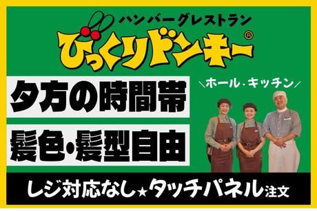 職場環境・雰囲気 | 職場環境 【従業員構成】 びっくりドンキーでは学生やフリーター、 主婦・主夫さんなど幅広い年齢層の方が 働いてくれています!中には「もともと びっくりドンキーが大好きだったので、 応募しました!!」というスタッフも♪ 【職場の雰囲気】 協調性がある 立ち仕事 自分の都合に合わせやすい 知識、経験不要 |