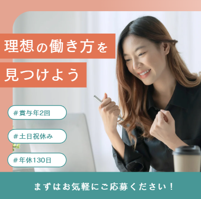 対象となる方 | 求めている人材 \業界・職種未経験者大歓迎/ ◇必須条件 ・要普通自動車免許(AT限定可) ・高卒以上 ・パソコンの基本操作ができる方 必要なのは上記3つのみ! まずはお気軽にご応募ください♪ |