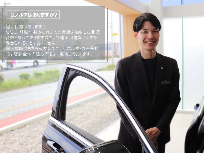 職種/仕事内容 | 仕事内容 ✅業績好調のため増員募集! ・お子さんの行事でのお休みや家族とお出かけもできる環境です♪ ・充実の福利厚生!働きやすい環境に自信あり! ・ノルマなし、残業もほとんどありません! ///////// ここがポイント!! ////////// 30代の社員が活躍中! 家族手当、県内指定フィットネス 利用料無料 キャリアアップも目指せます! 転勤はありません! 販売台数に応じてインセンティブがあり、給料もUP! 車両モニター制度あり! //////////////////////////////////////////// <こんな方にピッタリ> ・沢山の仲間とチームワークを大切に働きたい! ・オンとオフのメリハリを持って働きたい! ・自分の趣味と両立して働きたい! ・家族の時間も大切にしながら働きたい! ・職場の仲間と、プライベートでも付き合いをしたい! ・全力で働いて、全力で遊びたい! ・食事会・飲み会は大勢でワイワイ楽しくやりたい! ・同年代のメンバーと切磋琢磨したい ※上記2つでも当てはまる方は、当社の社風に賛同して頂けると思います。 <具体的なお仕事> 店頭にご来店されたお客さまを中心に、 VOLVO(ボルボ)の新車や中古車の販売、 保険のご提案を行っていただきます。 訪問による営業活動や店頭接客 お車購入後のアフターフォローが メインになります。 訪問による営業では、既存顧客 (オーナー様)と、見込み顧客へ 営業活動を行っていきます。 訪問営業と店頭接客の割合は、 訪問が3割・店頭接客が7割ほどです。 お車購入後のアフターフォローでは、 主に車検のご案内をしたり、お車の調子をお伺いしたりしています。 目標はありますがノルマはございません! 営業スタッフ同士でチームを組み、 チームで目標を目指すので必要以上に 数字に追われることはありません。 余裕をもって営業活動を行っていただけます。 <仕事をする環境> 上下関係もフラットなので、 現場社員から上司に意見を言いやすく オープンな環境です。 毎年、新年にはグループ社員が全員 (100人規模)集まって、 ホテルで懇親会を行うなど、社員みんなで楽しく仕事ができています! キレイなショールームで気持ちよく働くことができますよ。 また車両モニター制度によって、 取扱ブランドの車両を一年ごとに乗り換えることもできます! 車好き、外車好きの方にオススメの環境です。 <従業員インタビュー> ◆営業(経験者) 中途入社3年目 業界歴16年 Q.藤沢自動車を選んだ理由は? 前職は国産車を取り扱うディーラーで勤務していましたが、 さらなる収入アップを目指すために転職を決意しました。 また、輸入車にも興味があったので、 転職先は輸入車を扱うディーラーが良いなと思いいろいろと企業を見てる中で、 VOLVO(ボルボ)を販売してみたい! と思い、転職先として選びました。 インセンティブ制度もしっかりあるので、 自分の頑張りが直接収入に反映され、 今では、前職の年収を上回っています! Q.仕事&会社の魅力は? 仕事の魅力は、最新のVOLVO(ボルボ)の 車に触れられることと、お客様が企業の 経営者の方や医師の先生などが多いので、 普段あまり関わることがない方とお話できることが魅力です! 新しい価値観を知れたり、貴重な経験談を 聞くことができるので、自分の成長にも 繋がります。 さらに、国産車の営業をしていたときは、 営業であるにもかかわらず、整備業務 のサポートなどで、本来の営業の仕事以外に時間を割くことが多かったのですが、 藤沢自動車では、営業部門と整備部門の 役割がしっかり分かれていて、営業の 仕事に専念できる環境なので、とても仕事がしやすいです。 また、部署・職種関係なく、社員同士の コミュニケーションも活発で、社員同士の 関係性が良好なのも、入社して良かったなと 感じるポイントです★ Q.応募を検討している求職者へ一言! 当社で働くと、今までお会いできなかった、いろいろな業界の経営者の方と 知り合えます。 なかなか聞けない話を聞けたり、ご紹介をいただいたりと、いろいろな経験も積めますよ! また、自分が頑張った分だけ、給与に反映されるので、収入アップを目指している方にもピッタリです! ぜひ、一緒に楽しく働きましょう! <藤沢自動車株式会社とは> FUJISAWA GROUP(石川ヤナセ株式会社、藤沢自動車株式会社)として、石川県唯一の3ブランドを扱っている輸入車正規ディーラーです。 メルセデス・ベンツ、ボルボ、プジョーの新車・中古車の販売、整備を行っております。 働き方改革や業務改革に積極的に取り組んでおり、社内インフラ整備もしています。 社員とその家族の心身の健康が重要な経営基盤と捉え、「健康経営」を目指しています。 最近では、来店型店舗へ向けた推進活動も積極的に行っています。 - 創業=1950年、男女比率=8:2 平均年齢=30代、平均勤続年数=10年 産休・育休取得率=100%、中途比率=60% 中途採用の未経験者割合=50% |