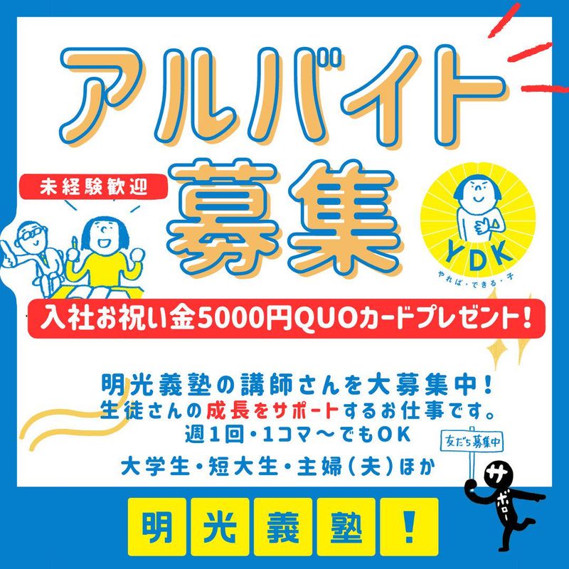 職種/仕事内容 | 仕事内容 \\ 塾講師デビュー応援! // << 入社祝金有(QUOカード5000円分) >> 小学生の指導なので授業時間は早め♪ 家庭と両立する主婦(夫)さんにも◎ もちろん学生さんも多数活躍中! 【 仕事内容 】 個別指導塾での小学生の指導をお願いします。 科目は算数・国語。得意な科目だけでもOK! 都合の良い時間に、指導可能な科目をお願いします。 大人数での授業ではなく、個別での指導で 席はパーテーションで区切られています。 生徒さん一人一人に合わせた指導が可能です! 【 未経験歓迎 】 普段の勉強のフォローなので未経験でもOK! 「勉強が特別得意じゃない…」という方でも大丈夫! 丁寧な研修があるので、塾講師のバイトが初めてでも安心です◎ 将来先生を目指している方も歓迎します! ✨週1日~・1日1授業~でOK! ✨家庭や学校との両立も◎ ✨バイトデビューも応援! ✨高収入!短時間で効率良くかせげます◎ |