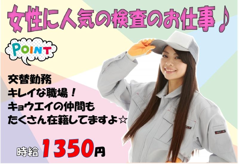 職種/仕事内容 | 仕事内容 派遣先は自動車のミラーを製造している会社です。 お願いするお仕事は自動車ミラーの動作確認や外観検査などのお仕事です。 検査業務経験者、大歓迎です! 20代/30代の女性を中心に活躍されている職場です。 工場内は冷暖房完備で働きやすい職場ですよ♪ また近くに大型スーパーもあるので仕事帰りのお買い物もとっても便利。 |