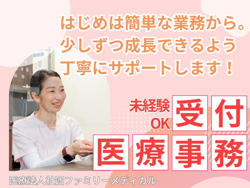 対象となる方 | 求めている人材 「無資格・未経験だからといって迷ってませんか??」 安心してください。その悩みは必要ありません!! 無資格でも未経験でもサポート体制が整ってるから、不安なく働くことが出来るんです。 頼もしい先輩方が多数そろってますので、是非ご応募を! 「カルテってなに?」「レセプト・・・?」 意外と聞いたことがあるけど、なんだろうという言葉もありますよね。 業務はもちろん、業界の専門用語も一緒に学んでいきましょうね! 意外に知っているものもあったりするかも?? \\【慣れてきたら・・・プロ意識をもって業務を】// 医療に関わるプロフェッショナルとしてのマインドを持ち、 常に自分の専門分野に対して必要な知識・技術を学び続ける姿勢を大事にしています! 【こんな方歓迎!】 ・PCの基本操作(入力、Excelでの簡単な表作成など)ができる方 ・患者さまと近い距離で関わりたい方 ・医療事務経験者優遇(未経験者も歓迎) ・レセプト経験者優遇(未経験者も歓迎) ・受付、フロント、レセプション業務などの経験がある方(未経験者も歓迎) |
