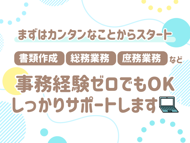 対象となる方 | 求めている人材 【必須条件】 ●基本的なパソコン操作(Word・Excel)ができる方 ●普通自動車免許(AT限定可) ※業務で使用する可能性があるため 【歓迎】 ●未経験から事務職に挑戦したい方も歓迎 ●年齢不問 ●ブランクOK |