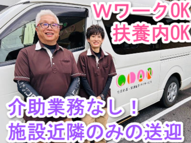 職種/仕事内容 | 【雇用形態】 アルバイト・パート 【職種】 施設近隣の送迎ドライバー/介助業務なし 【仕事内容】 利用者様の送迎業務をおまかせします。 【具体的には…】 〇利用者様のご自宅から施設までの送迎 〇車両の清掃 *ワンボックス車を使用します *施設近隣エリアでの送迎です *支援員の同乗あり(乗り降りの介助を担当) 【仕事の特徴】 <<Instagram(インスタグラム)公開中!>> 施設での様子や、利用者さまとの楽しい日常を投稿しています* 職場の雰囲気を知りたい方は、 「clan 東住吉北館 インスタ」 で検索してみてください♪ 現在活躍中の送迎運転手は平均年齢62歳!60代が多い職場です。 年齢不問のため、ブランクから復帰して活躍するミドル世代の方、定年退職後に活躍するシニア世代の方が多くいらっしゃいます! 性別も問いません。 家庭と両立したい主婦(主夫)さん、子育てと両立したいママさん・パパさんの活躍も応援します* 家庭や子どもの用事でお休み調整可能ですので、安心して働いていただけます! <<このような方にオススメです!>> *未経験から送迎運転手の仕事に挑戦したい *タクシー運転手・バス運転手の経験を活かして新たな挑戦をしたい *介護タクシーなど介護・福祉に関わる仕事に興味がある *扶養内勤務で賢く稼ぎたい *ワークライフバランス充実の働き方がしたい *残業ほぼなしでメリハリつけて働きたい 勤務日数・曜日、時間は相談に応じますので、「家庭と両立」「家族の介護と両立」もできますよ* 入職日も相談可で、在職中の方もハローワーク(職業安定所)などでお仕事をお探し中の方もOK! アルバイト・パート |