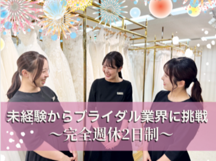 対象となる方 | 求めている人材 \業界・職種未経験OK!学歴・資格不問/ ブライダル業界に挑戦できる! 特別な知識や経験は必要ありません。 「人を幸せにする仕事がしたい」 その気持ちを応援します! ▼こんな方と、ぜひ一緒に働きたいです! ・スキルや経験よりも、 人の話をじっくり聴くのが得意な方 ・相手の期待を超える提案をすることに、 喜びや楽しさを感じる方 ・ひとりで頑張るより、チームで協力して 目標を達成するのが好きな方 ・ファッションやコーディネートが好きで、 人を美しくすることに情熱を注げる方 ・「一生に一度だから」というお客様の想いに、 どこまでも真摯に向き合える方 未経験OK 第二新卒歓迎(学歴不問) 資格不問 ============ 【歓迎】 着付け免許のある方 ブライダル業界経験者 衣装コーディネート経験者 =========== *女性活躍中 *主夫・主婦活躍中 *子育てママ在籍中 *20代,30代,40代活躍中 *ブランクOK *ハローワークで求職中の方も歓迎 性別の条件と理由:女性歓迎(ポジティブアクション) |