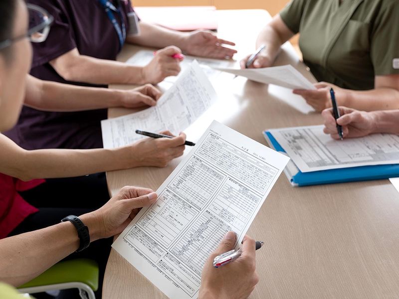 職場環境・雰囲気 | 職場環境 患者さまが安心して、よりよい暮らしを過ごせるように――。 当院ではそれぞれの専門職が密にコミュニケーションを取り合い、協力しながら業務に励んでいます。 もし困ったことがあっても質問しやすい雰囲気です。 ※屋内禁煙 |