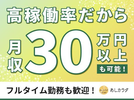 職種/仕事内容 | 仕事内容 効率よく稼げます! あしカラダはリピート多数の地域密着店。 リピート率が高くとにかくお客様が途切れにくい! 平日でも予約が埋まりやすく、 フルタイム勤務なら1日で複数本の施術が可能。 ◆さらに頑張った分はしっかり反映 月収30万円以上を達成するスタッフも 評価の透明性が高く、 「ずっとここで頑張りたい」と思える環境です! お客様に“癒し”と“元気”を届けるお仕事です! 人気の全身ボディケアをはじめ、 フェイシャル・ ドライヘッドスパ・ハンドリフレなど、 お客様のお悩みやご希望に合わせた リラクゼーション施術を行います。 まずは「どこに疲れを感じていますか?」と丁寧にヒアリング。 メニューのご説明やお声がけもしながら、 心をこめて施術していきます。 「ラクになった!ありがとう」と 笑顔で帰っていただける瞬間が、 一番のやりがいです。 全身もみほぐし・リフレクソロジー・ アロマテラピーなどといった人気メニューを 無料で習得できちゃいます! スキルアップも目指せますよ! ※仰向け・うつ伏せでの施術のお店が多い中、 当店の施術は横向き! 難しい技術なぶん、ニーズが大きいです。 手に職を付けられますよ! 具体的には… ・サロンでの接客 ・施術 ・設備の確認 ・掃除 ・予約管理、在庫チェック ・使用した道具の片づけ、次の日の準備 ・SNS投稿 など <常連さん多数> 平日でもお客様が多数いらっしゃいます! ローテーションで施術を行えるので、 しっかり稼げる環境です! \未経験者も経験者も大歓迎です!/ 実は、あしカラダのセラピストの約8割が未経験スタート。 「マッサージなんてやったことない…」という方でも大丈夫! 丁寧な講習があるので、早い方なら2週間でデビューも可能。 フェイス・アロマなど、 幅広い施術も、3ヶ月あればしっかり習得できます。 しかも、技術力をしっかり 評価してくださるお客様ばかりなので、 リピート率・顧客満足度も高く、 自然と稼働率もアップ! 「やってみたい」「興味がある」 ――その気持ちがあれば十分です。 一歩踏み出して、自分の“手”に技術を。 あしカラダで、プロの一歩を始めませんか? 【研修制度あり】 未経験の方も安心!施術の基礎知識、 接客マナー、ボディケア実技、 店舗業務などを段階的に学べます。す♪ フルタイムでガッツリ稼げる!月収30万円も可! 固定シフトも予定に応じたシフトもOK(自己申告制) 週5日以上・1日6~8時間のレギュラー勤務歓迎! 未経験からでも高収入を目指せます! もちろん週1日の短時間勤務もOKです。 ◆週1~7日OK!自由な働き方 ◆髪色自由&駅近で通勤快適 「短時間で副業したい方」も 「生活費をしっかり稼ぎたい」方も大歓迎! 指名を獲得したり、 全メニューを習得したりすることで、 単価がしっかりアップします。 さらに、スケジュールの提出や 店舗運営への協力など、 施術以外の貢献もきちんと評価します。 他のアルバイトでは「昇給しても数十円…」 なんてことも珍しくありませんが、 あしカラダでは違います。 自分のペースで努力した分だけ、 しっかり収入に反映される。 そんな「報われる環境」を用意しています。 新宿御苑前店の特徴!! 土地柄、外国人観光客も来店します。 お花見・お祭りシーズンなどといった 季節によってお客様が変わってきます。 ◆スタッフ構成・働き方 スタッフは現在10名で20代が2名、 残りは30代・40代・50代が中心です。 レギュラー勤務でガッツリ稼ぐ人の他、 俳優・役者・芸人・パフォーマー・ ミュージシャン・アイドル・講師など Wワークの方も多く在籍しています。 店長も元ダンサーで、隙間時間での 働き方を実践していた経験者です! お客様もスタッフもバックグラウンド・ ライフスタイルも多彩なので 個性や価値観を尊重し合いながら、 働いていけますよ! ★面接時に実際の施術を無料で体験できます! まずはリラックスしにお店にお越しください! 店舗見学もお気軽にお問い合わせください。 |
