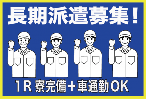 待遇・福利厚生 | 【保険制度】 雇用保険、労災保険、健康保険、厚生年金 【福利厚生】 待遇・福利厚生 ワンルーム寮完備 ※生活備品付きなのでスグに生活が始められます。 ◇社会保険完備 ◇残業・深夜・休出手当 ◇日払い制度あり ◇備品付きワンルーム寮完備 ◇赴任旅費会社負担 ◇交通費支給 ◇車・バイク・自転車通勤可 ◇有給休暇 ◇作業着無償貸与 ◇食堂利用可(300円~500円) ◇お弁当持込み可 ※各待遇は規定有 |
