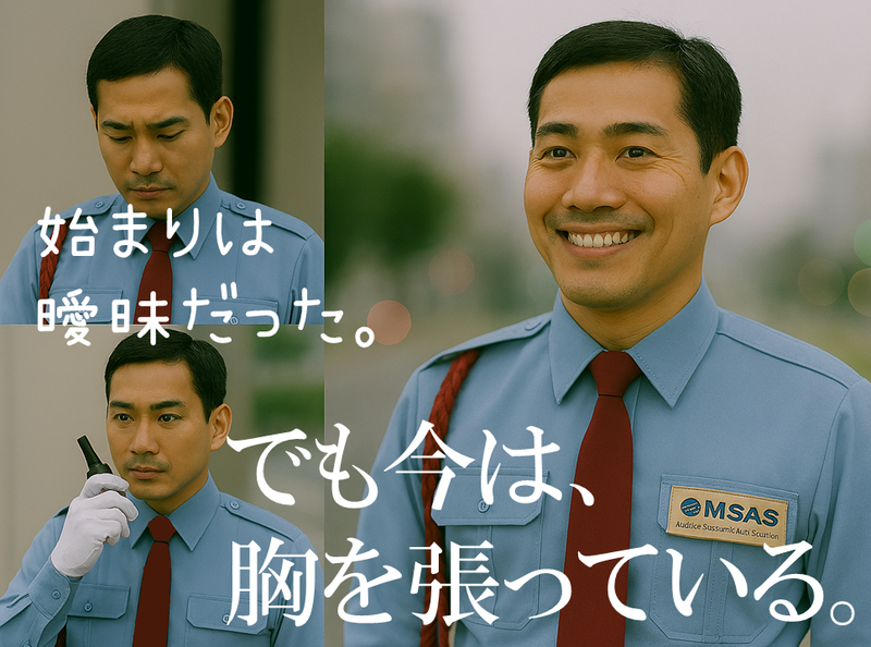 職種/仕事内容 | 仕事内容 ――――――――――――――― 「このままでいいのかな」って 思っていませんか?  ̄ ̄ ̄ ̄ ̄ ̄ ̄ ̄ ̄ ̄ ̄ ̄ ̄ ̄ ̄ やりたいことが簡単に見つかるわけじゃないし。 なんとなく働いて、気が付くと1日が終わる。 …それの繰り返し。 そんな毎日を少しでも変えてみたいなら、エムサスという選択肢もアリかもしれません。 警備と聞くと「年配の方しかいないのでは?」とか、「退屈そう」と思う方もいるかもしれませんが、意外と20代・30代も多くて、チームプレーで……やってみるとちょっと驚くかもしれません。 ―――――――――― ■\おすすめPoint/  ̄ ̄ ̄ ̄ ̄ ̄ ̄ ̄ ̄ ̄ ✅未経験者も月収30万円以上可能! ✅残業ほぼなし!希望制シフト ✅夜型さん大歓迎♪日勤もOK! ■\実例/ 高日給と寮完備の文字に惹かれ、 応募した先輩エピソード  ̄ ̄ ̄ ̄ ̄ ̄ ̄ ̄ ̄ ̄ ̄ ̄ ̄ ̄ ̄ ̄ ̄ ̄ ✅22歳:「何となく」で応募 ・前職は整備士 ・「稼げる仕事」を探してエムサスを発見! ・高日給と寮完備に惹かれて応募 ▽ ✅ゴールデンウィーク限定勤務スタート ・20人の隊員を掌握し、的確に指示を出す隊長の姿に感動する。 ▽ ✅23歳:再入社、そして現場の隊長へ ・GW後、転職活動がうまくいかず、「本当にやりたいこと」も見つからない状況……。 ・「せっかく出会えた会社だから、とりあえずやってみるか」と思い、再入社。 ・秋葉原での夜勤からスタート! ▽ ✅入社1年目:13人の現場の隊長を任される ・「全てのリスクを回避する行動」を頭でシミュレーションする面白さや、安全の奥深さに魅了される。 ▽ ✅26歳:念願の正社員へ! ・「もっと警備を極めたい」と、管制の仕事を2年間経験する。 ・念願の正社員登用を果たし、両親にも喜ばれる。 ▽ ✅28歳(現在):キャリアアップ! ・管制として警備士をまとめるポジションに。 ・警備士の配置決定という「基本ドキドキする」業務に、大きなやりがいを感じている。 ■\何となく出始めた先輩が語る/ この仕事の魅力とは?  ̄ ̄ ̄ ̄ ̄ ̄ ̄ ̄ ̄ ̄ ̄ ̄ ̄ ̄ ̄ ̄ ̄ 当初は『駐車場にいる警備員さんは、おじさんやおじいちゃんが多いから、自分でもできるでしょ』って思っていました。 でも、そのイメージはすぐに崩れました。 初日は仕事を覚えるのに必死だったし、2日目には『あれ、腰が痛いぞ…』って。 中学・高校と野球で鍛えていたのに、「甘くないな…」と感じましたね。 それでも、『チームでの連携作業』がすごく楽しかったんです。 担当した守谷サービスエリアは20人と大所帯の現場。 無線機で連絡を取り合って車や人を誘導していく“ライブ感”や、野球にも通じる“チームプレーの一体感”にすごくテンションが上がりました! 中でも特にシビれたのが、“隊長のカッコよさ”! 20人全員の名前と配置を覚えていて的確な指示を出したり、『〇〇さん、ありがとう!』って褒めて士気を上げたりする仕事ぶりに感動。 体力的には大変でしたけど、この経験で警備の面白さを知ることができました。 ■\先輩が語る「当社の魅力」は?/  ̄ ̄ ̄ ̄ ̄ ̄ ̄ ̄ ̄ ̄ ̄ ̄ ̄ ̄ ̄ ̄ ̄ ̄ 正社員になって2年が経ちますが、“な~んか、エムサスって居心地が良いんだよな~”って、僕だけでなく、他の人もよく言っていますね。 上司は気さくに接してくれて、大きな失敗をした時も何でもないかのようにフォローしてくれます。 プライベートなことも話せるし、相談にも乗ってくれるから、本当に家族みたいな存在です。 警備士の皆さんも本当に良い人ばかり。 特に年配の方々からは多くのことを学ばせてもらっています。 色々な経験をされているので、僕にとっては勉強になることばかり。 いつもお菓子をもらったりして、孫みたいに可愛がってもらっています(笑) こんな風に居心地が良いのは、従業員のことを本当に大切にしてくれる社風だから。 警備の仕事をネガティブに捉える人もいるかもしれないけど、エムサスにいると全く逆にも感じられます。 ――――――― 今はまだ『やりたいこと』が見つかっていなくても、ここでならきっと、面白さや奥深さに出会えるはず。 きっかけは「なんとなく」とか「とりあえず」でもいいんです。 まずは一歩、踏み出すあなたを応援します。 |