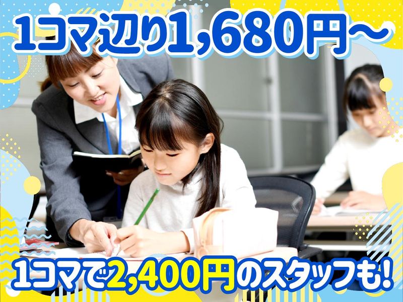 給与 | 1業務あたり 1,680円~2,400円(コマ 80分) 給与詳細 1業務あたりは、1コマあたりを意味します。 基本給:1業務あたり 1680円 〜 2400円(80分) クラス授業(中学生のみ)1コマ(70分)1750円~2000円 個別指導 小学生1コマ(80分) 1680円 中学生1コマ(80分) 1880円 ※個別指導は基本的に生徒は2人ですが、3人の場合は+100円 ※毎年1コマ10円昇給 ※経験を考慮して1コマ2400円も可 |