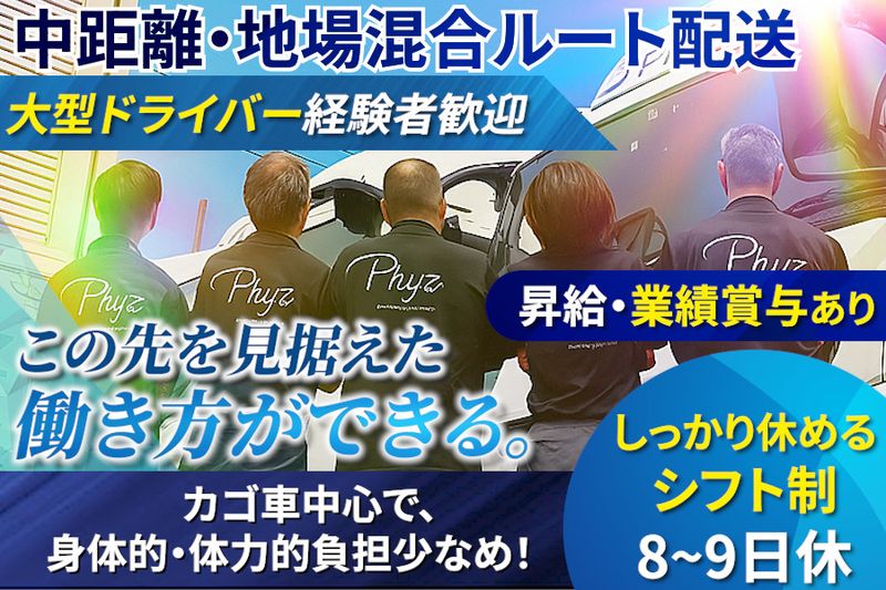 職種/仕事内容 | 【仕事内容】 【東証上場企業のグループ会社】 6tトラックでの中距離・地場混合配送です。 ▶大型免許を活かして働く環境を改善したい 30代40代の方にも、ご応募いただいています! 【 当社のオススメPoint 】 ■未経験OK!充実のサポート体制 ■安定と働きやすさ重視の転職にもオススメ ■従業員持株会制度でお金を増やせる福利厚生 ■定時6時~15時/残業をしても早めの帰宅✨ ✅具体的なお仕事内容 6t車(ワイド・ゲート付き)で、食品会社の各店舗へ、お菓子や飲料などのドライ食品を届ける、中距離・地場混合ルートの配送をお任せします。 配送先やエリアはある程度決まっているため、道順に慣れればスムーズに進められる仕事です。 ・商品の積み込みや積み下ろし ・関西圏内の店舗への配送 ・伝票の確認とサインの受領 ・拠点に戻り、片付けや日報記入など 【配送エリア】 ・和歌山県 ・兵庫県 ・京都府 ・滋賀県 など ※今後、エリアが変更となる場合があります ※スポットで長距離をお願いすることもあります 【無理のない配送スタイル】 ■納品時間は幅を持たせた設定 → 「〇時〇分~〇時〇分」などタイトな時間指定がないため、落ち着いて対応できます ■荷下ろしはカゴ車が中心 → 力作業が少なく、身体への負担も軽めです ■状況に応じて… → パレット積み:たまにあり → 手積み作業:稀に発生 ==================== 安心して働きたいあなたの想い 上場グループの安定で応えます! ==================== 「将来の不安を減らしたい」 「腰を据えて、安定した働き方を選びたい」 そんな理由で、当社を選ぶ方が増えています。 私たちは、東証上場企業「ファイズホールディングス株式会社」のグループ会社。全国の物流を支える存在として、大手コンビニやECサイトなど、信頼ある企業と安定的な取引を継続しています。 さらに、景気の波に左右されにくい生活インフラ領域を担い、右肩上がりの業績を継続中。日々の業務だけでなく、将来設計やキャリアまで、安心感のある環境を提供しています。 ■長く働ける会社での安定収入 ■将来のための地に足のついた職場 今後についてしっかり考えている方からも選んでいただいています。 ==================== 自分の時間を取り戻せる働き方。 ==================== 「もう、無理なく働きたい」── そんな想いで転職してきた仲間が、ここで新しい生活をスタートしています。 勤務時間は【朝6時~15時】。残業を1日2~3時間予定していますが、朝が早く始まる分夕方以降はまるごと自分の時間に。 ・子どもと夕食を囲める ・趣味や資格の勉強の時間ができた ・休日もしっかり取れるので体も心も休める ▶そんな声が続々届いています。 \だからこそ叶う/ 「無理のない働き方」+「生活の質向上」 長く続けたい人こそ、この時間帯の魅力を実感しています。あなたも、時間にゆとりある毎日をここで手に入れませんか? ======================== ドライバーの経験を、その先のキャリアへ。 【将来の選択肢が広がる職場】 ======================== 当社はドライバー職を「価値ある職種」として重視しています。 ドライバー経験者だからこそ担える役割もあり、長期で活躍いただける制度が多くの社員に選ばれています。 【求人ID-KHA】 |