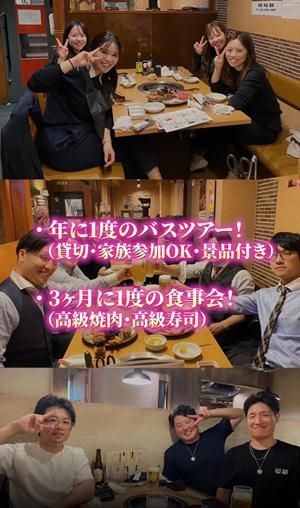 待遇・福利厚生 | 【保険制度】 雇用保険、労災保険、健康保険、厚生年金 【福利厚生】 待遇・福利厚生 【福利厚生】 ・決算賞与 ・昇給あり ・退職金制度あり ・宅建取得手当あり(月額3.5万円) ・資格取得支援、手当あり ・歩合多数あり ・交通費規定支給(月額上限1万円) ・社会保険完備 ・有給休暇→今年度、9割消化! < 自家用車持込の場合 > ・軽自動車/月2.5万円 ・普通車/月3万円 を手当としてお渡しします。 ※ガソリン代も別途支給 ╭━━━━━━━━━━━━╮ ✨ 社内イベントも充実 ✨ ╰━━━━━━━━━━━━╯ ・年1回の貸切バスツアー ※家族参加もOK ・3ヶ月に1回の食事会 等 |