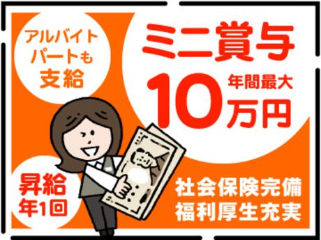 待遇・福利厚生 | 【保険制度】 雇用保険、労災保険、健康保険、厚生年金 【福利厚生】 待遇・福利厚生 【福利厚生】 ・ミニボーナス年2回(7月・12月)→年間最大10万円 ・昇給(年1回)20円 ・制服貸与 ・有給休暇 ・育休産休 |
