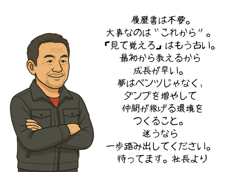 対象となる方 | 求めている人材 【必須】 ⭐本気があれば何もいりません! ⭐学歴経験不問 【歓迎】 ✅普通自動車免許(歓迎) 【あるといい資格や経験】 ✅解体・建築経験者 ✅中型免許以上保有者 ⭐こんな方にピッタリ ・職人として独立を考えている ・人に縛られず、自分の裁量で働きたい ・手に職つけて稼ぎたい ・解体・建築の経験を活かしたい ・今の自分の実力で勝負したい |