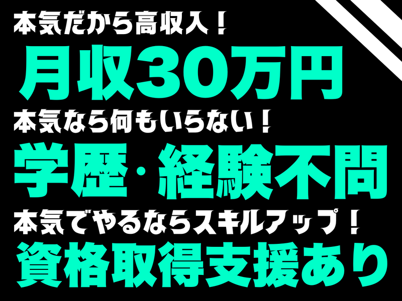 給与 | 日給14,000円~18,000円 給与詳細 基本給:日給 1万4000円 〜 1万8000円 【一律手当】 全員に一律で支払われる通勤・皆勤・家族手当金額:なし 全員に一律で支払われるその他手当金額:なし 本気があれば、 給与はもっとあがる可能性アリ!!! 気持ちは必ず評価します。 ※作業内容・現場・経験により変動 【給与例】 給与例 ⭐本気だから高収入 【月収例】 ・40万円以上可(実績あり) |