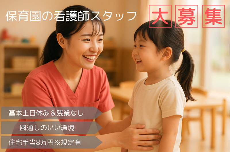職種/仕事内容 | 仕事内容 ✨\”何もない”が一番いい/✨ 何も起きない日こそ、子どもたちが元気に過ごせている証。 小さな安心を積み重ねていく、そんな看護のお仕事です。 未来ある子どもたちと一緒に過ごし、 健やかな成長を見守りましょう! 保育や行事には職種の垣根をこえて 園全体で取り組む一体感が魅力です! 小児や保育園での経験は一切不問♪ 「まちの保育園」なら働きやすさ抜群!  ̄ ̄ ̄V ̄ ̄ ̄ ̄ ̄ ̄ ̄ ̄ ̄ ̄ ̄ ̄ ̄ ̄ ̄ ✅基本的に土日祝休み ✅残業なし(17:30退勤)&夜勤ナシ ✅ブランクからの復帰も歓迎 ✅有給休暇が気兼ねなく取得できる ✅長期休暇や連休も取得可能 ✅ご自身の子供も預けられる ✅豊島区在住の方は住宅補助8万円あり (隣接区のかたはご相談ください) ⭐子供の成長を近くで感じられる♪  ̄ ̄ ̄ ̄ ̄ ̄ ̄ ̄ ̄ ̄ ̄ ̄ ̄ ̄ ̄ ̄ ̄ ̄ 医療の知識は必要になりますが、 それよりも重視しているのは 子供の成長を喜べるかどうかです。 ハイハイしかできなかった子が つかまり立ちができるようになり、 歩き出したり。 「ばばば」「だだだ」としか 発していなかった子が 少しずつ単語を話せるようになったり。 泣いてばっかりだった子が強くなったり、 「ありがとう」「ごめんなさい」と 言えるようになったり、 お友だちが増えていったり。 そんな子供たちの成長を 私たちと一緒に見守りませんか? ⭐「一人ぼっち」にはなりません!  ̄ ̄ ̄ ̄ ̄ ̄ ̄ ̄ ̄ ̄ ̄ ̄ ̄ ̄ ̄ ̄ ̄ ̄ 保育園に看護師が在籍していることは、 親御さんにとってこの上ない安心材料です。 専任としては1名だけの配置ですが、 当園では保育士、栄養士、そして園長も含め 園全体で子供を見守る体制になっています。 定期的にチームで情報共有する機会があり、 行事などにも一緒に参加するので、 孤独感を感じることはないと思います! ⭐アイデアを活かせる環境です!  ̄ ̄ ̄ ̄ ̄ ̄ ̄ ̄ ̄ ̄ ̄ ̄ ̄ ̄ ̄ ̄ ̄ ̄ 例えば、「目」の大切さを 子供たちに伝えるために イラストを使った資料をつくったり、 先輩看護師は試行錯誤していました! 「置き菓子サービス」の導入を提案し、 実現したこともあります! 基本的にいいと思って提案したことは 積極的に受け入れられるので あなたもぜひ楽しんでみてくださいね♪ ⭐仕事内容  ̄ ̄ ̄ ̄ ̄ ̄ ̄ ̄ ̄ ̄ ̄ ̄ ̄ ̄ ̄ ̄ ̄ ̄ 園のメンバーと一緒に子供たちを見守り、 保育補助やけがの処置など 状況に応じて対応していただきます。 《対応の例》 *子供の出欠・体調チェック、 日々の健康観察 *病気・けがの対応 (応急処置、保護者への連絡、受診調整) *職員の体調確認・健康サポート *園医による定期健診の対応・補助 など 《チームで連携する機会も多数》 *園内行事への参加 *身体測定(月1回) *全体会議(月1回) *昼礼(月2回) など 《他にも…》 手洗いや熱中症予防などについて 子供たちにもわかりやすく伝える取り組み、 感染症や小児医学会などからの情報収集、 園内の共有、保健だよりの作成…なども 手掛けてくれると助かります! |