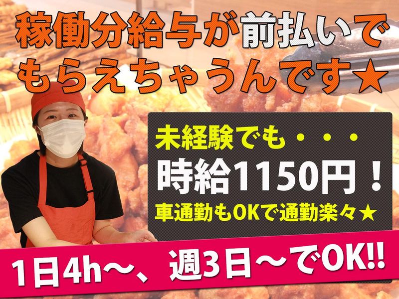 職種/仕事内容 | 仕事内容 店内でのレジ・接客、焼き鳥・ザンギ・お惣菜の販売、簡単な製造業務、簡単な事務作業をお願いします。 <販売業務> ・ご来店されたお客様のご注文を聞き、商品を梱包 ・お会計 ・商品の陳列 といったお客様対応業務を担当。 <製造業務> ・焼き鳥を焼いたり ・ザンギやお惣菜を揚げたり ・お惣菜を詰めたり といった、とっても簡単な業務を担当。 下準備は事前に自社工場で行われているので、難しい事をしていただく訳ではありません♪ 決められた工程通りに業務を行っていただくだけですのでご安心ください☆ ★アピールポイント★ ◎日中限定でも、午後限定でも、夜限定でもOK! 1日4時間~OKの自由なシフトなので楽々バイト★ ◎交通費も支給されて、お弁当は従業員割引で買えて、シフトの提出は月2回に分けて実施するのでプライベートとの両立もしやすい☆ 【週3日でも週5日でも自由に設定可能!】 えっ??? 時間だけじゃなく、曜日も日数も自由に選べるの??? と、よく驚かれます(笑) 「今月は忙しいので週3日で!」 「来月出費がかさむので今月はたくさん出勤したいので週5日で!」 「土日祝は子どもといたいので休みたいです!」 など、ライフスタイルに合わせた働き方が出来るのが『炎』の良いトコロ♪ |