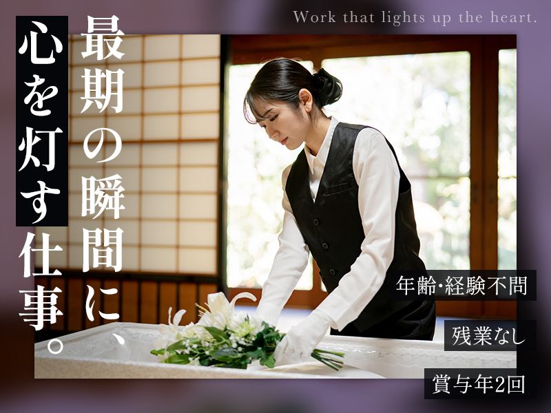 職種/仕事内容 | 仕事内容 ほぼ毎日、17時15分に退社! 賞与年2回+手当+インセンティブ “働きやすさ”と“安定収入”を 同時に叶える、納棺湯灌師の仕事。 ‥‥‥●働く魅力は?●‥‥‥ ✅資格手当で+3万円以上給与UPも ✅未経験OK!安心の研修あり ✅チーム制で丁寧なフォロー体制 ✅残業少なめ(月0~10時間) ✅20代~40代活躍中!定着率高め ‥┈┈┈┈┈┈┈┈┈┈┈┈┈‥ 最期の瞬間に、心を灯す仕事。 ‥┈┈┈┈┈┈┈┈┈┈┈┈┈‥ 旅立ちの姿を整える湯灌(ゆかん)の仕事 亡くなられた方の人生に敬意を込め ご遺族に寄り添います。 心を込めた仕事は、 必ず人の心に残ります。 ご遺族にとって、 悲しみのなかにある“優しさ”は救い。 誰かの心に深く届く、 そんな仕事を始めてみませんか? ‥‥‥●どんな仕事?●‥‥‥ 2人1組で斎場・ご自宅へ伺い、 ご遺体のケアや身支度を行います。 【 具体的な仕事内容 】 1 | ご遺体の洗浄・身支度処置 2 | 遺体衛生保全士の補助業務 3 | 依頼手配や在庫管理 など 対応件数:1日2~4件ほど ※繁忙期や店舗により変動あり 人生の最後を清らかに整え、 ご遺族に寄り添う大切な役割です。 |