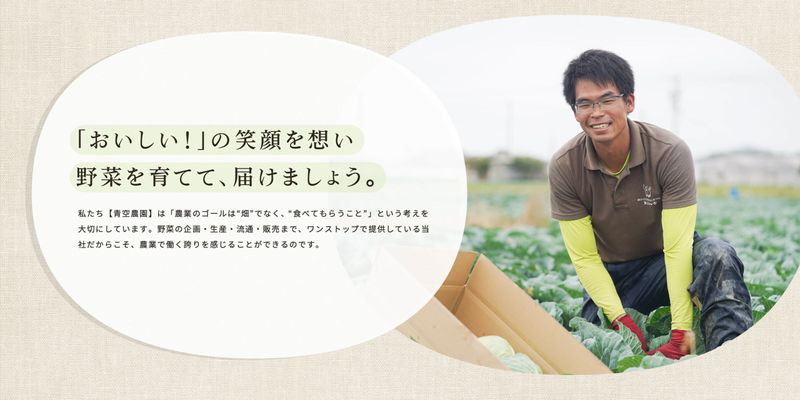 職種/仕事内容 | 仕事内容 ◇-◇-◇-◇-◇-◇-◇-◇-◇ \未経験者歓迎/ 設立11年目! 成長中のベンチャーで 男女20~30代の若手約70名が活躍中! ◇-◇-◇-◇-◇-◇-◇-◇-◇ ≪年間50品目以上の野菜を栽培!≫ □レタス □大根 □トウモロコシ □トマト など ▶まずは体験だけでもOK!◀ \\ 青空農園のポイント! // ✅社宅完備! ┗2DKで家賃2万前後 ✅昇給&年2回の賞与あり! ┗頑張りをしっかり還元 ✅キャリア形成可能! ┗ジョブチェンジ&独立支援制度あり ==================== お電話でのお問い合わせはコチラ! TEL:053-488-8012 ==================== 【 仕事内容はコチラ 】 01| 1年目 ◎畑づくり ◎定植 ◎生育管理 ◎肥料散布 ◎収穫 など 02| 慣れてきたら ◎アルバイトのシフト管理 ◎営業との打合せ など ≪POINT≫ ★作業は、畑:8割/ハウス:2割 ★機械作業多め→女性でも活躍しやすい! ★自社農園は100ヘクタールの広さ (野球ドーム20個分) ★チーム制で新人を徹底フォロー! └1チーム4~5名 └年に1回チーム編成あり ★2021年には出荷センターを新設! |