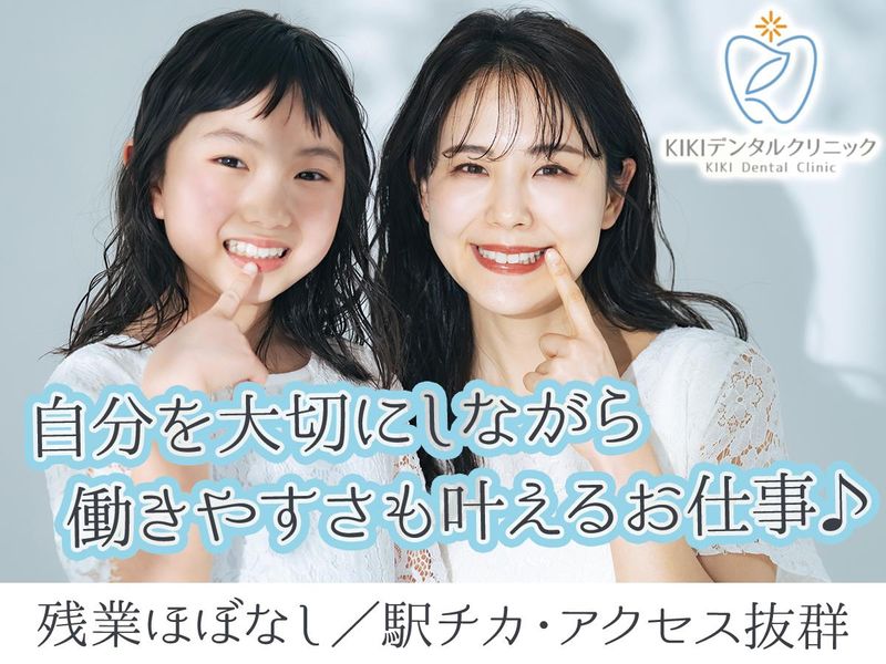 職種/仕事内容 | 仕事内容 KIKIデンタルクリニックは「家族にしてあげたい治療」をモットーに、すべての方が安心して通える、地域に根ざした歯科クリニックを目指しています。 「歯医者さんってちょっとこわい…」そんなイメージを変えていけるよう、私たちはリラックスできる空間づくりにこだわり、完全個室や半個室の診療室をご用意。 患者様が安心して治療を受けられる環境を整えています。 また、患者様だけでなく、スタッフにとっても心地よく働ける職場づくりを大切にしています。 ライフバランスにあわせ、⼦育てや介護と両⽴しながら働く⼥性スタッフも多数活躍中︕ 一人ひとりが自分にあった働き方を選択し、それぞれの理想を実現できる環境が整っています。 今回は歯科衛生士として、器具の準備や片付け・受付対応・院内清掃・診療の補助などの幅広い業務をお任せします。 初めての方や経験が浅い方でも、先輩が実務から患者様との接し方まで自信を持って業務に取り組めるよう、丁寧にサポートします。 患者様に寄り添いながら、自分自身の成長も実感できる、やりがいのあるお仕事です。 さらに、当クリニックは日本ではまだ導入率の少ない『歯科用CT』を完備。 より正確な診断と精密な治療を実現するとともに、医療機関向けの高性能な空気清浄機の設置や、厳しい衛生基準をクリアした滅菌器を使用するなど、環境の整備にも力を注いでいます。 そのため「歯科衛生士としてスキルアップしたい方」や「ブランクがあっても復帰を考えている方」にとって、働きやすく成長できる職場です。 ゆくゆくあなたには、マネジメント業務にもぜひ挑戦していただきたいです。 仕事に慣れ、実⼒がついた暁には、仕事の進め⽅などアイデアを出し合い、メンバーの育成・成⻑に活かしてください! |