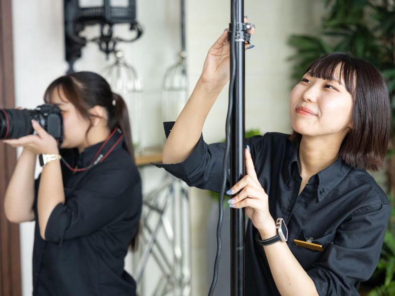 職種/仕事内容 | 仕事内容 \ ブライダル写真の撮影アシスタントのお仕事 / お任せするのは結婚式とは別日に行う『前撮り』の撮影アシスタント。『前撮り』とは新郎新婦様(場合により親御様も含めて)だけで、施設内を使って思い出に残るシーンを撮影するものです。アシスタントはカメラスタッフに同行し、小道具(ブーケや傘など)の持ち運び、撮影時の照明サポートや新郎新婦様へお声がけなどを行います。1回の撮影で1.5~2.5hほど。慣れてきたら、次の撮影場所へ新郎新婦様と移動しながら、インカムを使って担当エリアのスタッフに連絡を入れるなどの誘導案内もお任せします。※撮影時間外は事務所内での『編集』や『事務』などもお願いします。 \ 未経験OK!撮影現場で働きたい方歓迎 / 『撮影現場で働いてみたい』『ブライダルのお仕事がしたい』という方は大歓迎です。11~14時の3h勤務のため、授業前の大学生やWワークなど短時間、扶養内希望が活躍中です。 ※また『前撮り』は平日が中心のため、土日祝でのお仕事はありません。 \ 上場企業グループだから安心して働けます / 当社は東証スタンダード上場の株式会社ツカダ・グローバルホールディングのグループ企業。当グループは全国19か所の結婚式場の他、ホテル、リラクゼーションサロン、フィットネスクラブの運営など、多くのブランドを展開しています。労働条件や職場環境などコンプライアンスの徹底・充実を掲げていますので、どなたでも安心して働ける職場です。 |