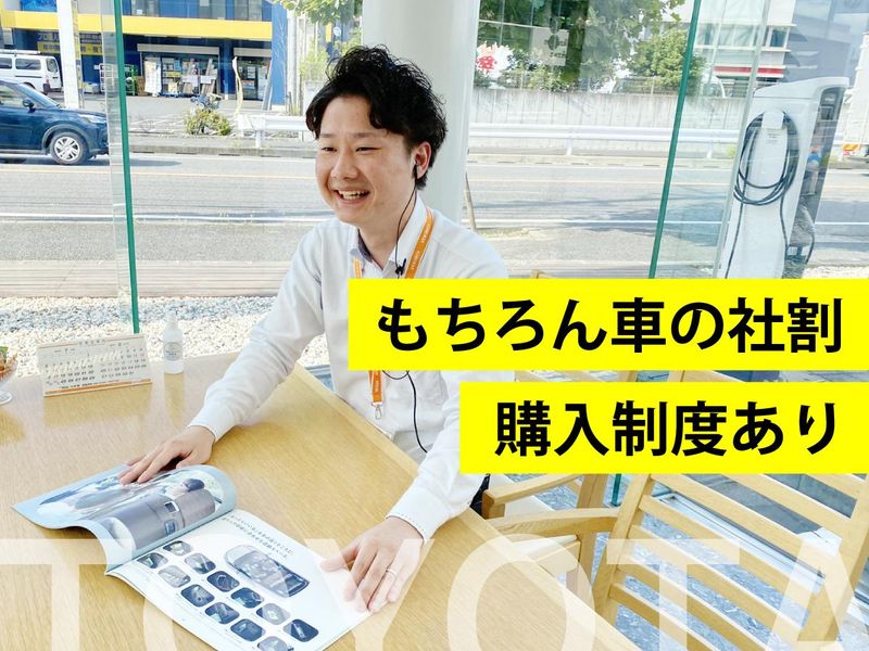 職種/仕事内容 | 仕事内容 \トヨタ系列企業の正社員になろう!/ 車の売上歩合以外にも手当がたくさん。 未経験でも、"普通にちゃんと稼げる" トヨタ車の営業スタッフ大募集! ❖入社4年で年収700万円突破する社員も ―・―・―・―・―・―・―・―・―・―・―・―・― 絶対に潰れない安定企業で、トヨタという ブランド商品を扱う、安心感とやり甲斐。 あなたの未来が大きく変わる転機です。 「車が好きだから、それを仕事にしたい」 「今の職場だと将来結婚も考えられない」 「どの会社も口コミが微妙。転職先を絞れない」 という方は、ぜひ最後までご覧ください。 ─────────────────── …⭐他の転職先候補と比べて下さい⭐… 当社で働くPOINTをサクっとご紹介 ─────────────────── ✅3種のインセンティブ+充実の手当多数 ✅厳しい行動管理なし。自由度高く働ける ✅売上の個人ノルマもありません ✅トヨタ育英年金制度・財形貯蓄制度あり ✅充実の家族手当・住宅手当支給 ✅転居を伴う県外への転勤なし ✅残業は月平均14時間(ほぼ定時で帰宅) ✅車の社割購入制度あり ✅提携スポーツクラブもいつでも利用可 ┏━━━━━━━━━━━━━━━━┓ ❖トヨタカローラ千葉ってこんな会社 ┗━━━━━━━━━━━━━━━━┛ 1961年に設立され、千葉県内に59店舗を 展開するトヨタ車の正規ディーラーです。 従業員1287名、直近の売上高は677億円。 まず潰れる心配のない安定企業です。 ────────────────── ……⭐お任せする業務について⭐…… ────────────────── トヨタ車の提案販売・ご購入後の各種 アフターフォローサービスを担当します。 様々なお客様との人情味ある交流を通じて トヨタ車の魅力を知っていただくこと。 これがあなたの役割です。 …【仕事内容は大きく分けて3つ】… ①お客様と世間話をして仲良くなる。 ────────────────── ▨担当地域のお客様へご挨拶にうかがう。 ▨世間話から信頼関係を築いていく。 ▶すぐに車を売るのではなく、まずは 顔を覚えてもらうところからスタート。 ②興味のあるお客様に車のご提案。 ────────────────── 「そろそろ買い替えようかな」という お客様がいらっしゃったら… ▨ショールームへご案内。 ▨家族構成や予算感をヒアリング。 ▨希望に応じた車のご案内。 ▶見事に成約になったら、各種手続き。 1年目の平均成約数は3ヶ月で2~3台程。 ③ご購入後のお客様のアフターフォロー ────────────────── 車をご購入いただいた後も、定期的に お客様にご連絡をとっていきます。 ▨車検や点検整備の案内。 ▨自動車保険の提案・見直し。 ▨そしてワイワイと世間話。 ▶売って終わりでなく、ずっと長い お付き合いができるので楽しい♪ ✅必要以上に厳しい行動管理は無し。 社員の考えを尊重する当社では 個人の裁量で自由度高く働けます。 ✅個人ノルマはありません。 指標となる店舗売上目標はありますが 個人に対する圧迫などは行いません。 ✅毎日ほぼ定時に帰宅できます。 残業は月平均14時間程度。 自分や家族との時間を大切にできます。 ────────────────── ………⭐お給料事情について⭐……… ────────────────── 初年度年収は343万円となりますが 2~3年目になると担当顧客も増えるので それに対しほぼ自動発生する手当も加算。 ▼▼ ✅つまり長く働く程自然と収入が上がる♪ 「あれ?今月なんでこんなに給料高いの?」 と給与明細を見て、驚く社員も多いそう。 ―・―・―・―・―・―・―・―・―・―・―・―・― 入社4年目営業スタッフ/年収例712万円 入社6年目営業スタッフ/年収例890万円 ―・―・―・―・―・―・―・―・―・―・―・―・― ❖<インセンティブ・各種手当の詳細>❖ 【販売台数マージン】 ・1台販売につき2000円~1万5000円。 ※販売台数により支給条件は変動します。 ─────────────────── 【利益コミッション】 ・利益のうち最大5%を支給。 ※車の価格により支給額は異なります。 ─────────────────── 【車検マージン】 ・1台につき600円~支給 ※車検台数により支給条件は変動します。 ─────────────────── 【12ヶ月点検紹介手数料】 ・1台につき500円支給 ※点検台数により支給条件は変動します。 ─────────────────── 【その他手当】 ・家族手当(配偶者/12000円・お子さん/+3000円) ・保険・カー用品の販売手当も別途支給。 ────────────────── ………⭐1日の仕事の流れ⭐……… ────────────────── ▨9:30/開店、当日のスケジュール確認 ▨10:00/お客様との商談&ヒアリング ▨12:00/昼食休憩 ▨13:00/点検の予約対応・訪問準備 ▨14:00/外出して既存のお客様への訪問 (車検のご案内など) ▨16:30/店舗に戻り、次回