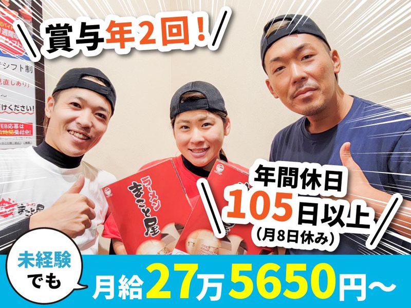 職種/仕事内容 | 仕事内容 ╋━━━━━━━━━━━━━━━ ★異業種からの転職多数 ★賞与年2回 ★最短半年で店長 ★家族手当(1万円) 単身赴任手当(7万円)等手当多数! ★面接1回!即採用可◎ ★有給取得率100% ━━━━━━━━━━━━━━━╋ 子育て支援や家族手当もあり、 学校行事などでの土日休みも可能! ライフステージの変化にも柔軟に対応します! 【仕事内容】 ・ホール/お客様の注文確認、商品提供、レジ ・調理/麺場・焼場(チャーハン等) 仕込みなどのキッチン業務 売上もこの5年で急激に増加! 2028年までに200店舗、 オープニング計画があるので キャリアアップのポスト多数◎ 成長に拍車をかける為、 一緒に頑張る仲間を募集します。 === 【30代マネージャーより】 まこと屋は店舗の枠を超えて 家族のようなつながりが 生まれる職場です。 困ったときは誰かが手を 差し伸べてくれる環境で、 私自身も悩んだときに幹部が すぐに駆けつけてくれた経験があります。 『仲間と絆を大切にしたい』 そんな方にピッタリな職場です! |