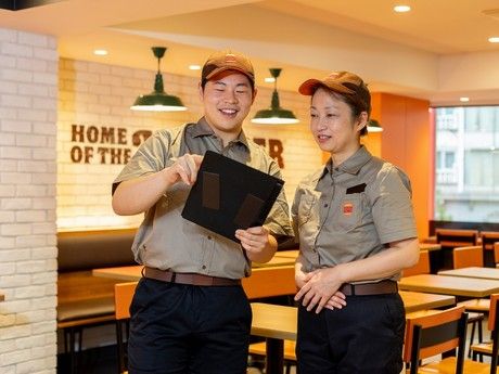 職種/仕事内容 | 仕事内容 本場アメリカから上陸♪<大人気ハンバーガー店>みんなでお客様に笑顔をお届けしましょう! 世界での店舗数第2位! 本格的なバーガーが自慢の「バーガーキング」 美味しいハンバーガーを一緒に日本に広げていきませんか? <働いているメンバーは・・・?> 高校生・大学生・20代・30代が8割! 年齢関係なく仲の良いメンバーが多いです! マニュアルも完備していて、シンプルなお仕事なので どなたでも安心して働けます★ 学校以外でバイト仲間・友達ができるのもBKの魅力♪ <一度食べたらクセになる・・・人気商品「ワッパー」の特徴!> 焼き立ての風味香る:セサミバンズ♪ お店でカットする:フレッシュ野菜♪ 肉汁滴るジューシー:ビーフパティ♪ こだわりがギュッと詰まった ビッグサイズの「ワッパー」が大人気★ <こんな想いを大切にしています★> バーガーキングでは、お客さまの「笑顔」を大切にしています♪ 商品の提供を通してお客様に笑顔をお届けすることはもちろん、 そのために、まずはスタッフ一人ひとりが「笑顔」で接客することが重要です! バイトデビュー歓迎!未経験者歓迎!接客経験者歓迎! 明るい接客ができる方をお待ちしております♪ <実は、期間限定商品もいっぱい!> 毎月、限定バーガーやサイドメニューが出ているんです! スタッフも楽しみながら、お客様に商品の提供をしています♪ <カンタン応募♪オンライン面接ok!> シフトのご相談や心配事など、 なんでもお聞かせください!WEB面接◎ 未経験でもスグ覚えられる!バーガーキングのお仕事をご紹介!丁寧にサポートします♪ ▼キッチンスタッフ ハンバーガーやポテト、サイドメニューの調理補助、店内の清掃 料理スキルに自信がない、、という方でも大歓迎♪ チェーンならではの強み★ 丁寧なサポートとマニュアルがしっかりあるので安心! ◎日によってホール・カウンター業務などもお任せします! バーガーキングで働くメリット◎こんなポイントが従業員から好評です♪ ★社割あり(30%オフ) 休憩時間や勤務後に利用可能◎ 人気のワッパーがお得に食べれちゃう♪ ランチ代を節約できると好評! ★仲間が増える! 年齢層が幅広いので 和気あいあいと楽しく働けます★ ブランクからの復帰も歓迎!学生も活躍中!ワークライフバランスを大切にしたい方にもオススメ★ 選べる時間や曜日♪ブランク歓迎! 急なお休みやシフト変更にも柔軟に対応◎ / 飲食店・ファストフード店 接客・販売未経験でも大歓迎! \ 子育てなどのブランクから仕事復帰をしたスタッフも多く在籍中♪ 曜日&時間固定も◎短時間勤務もフルタイム勤務もok! 学業や部活の予定に合わせてシフト希望を提出できます! バーガーキングは、世界中で愛されているお店なんですよ♪ 【英語のメニューやマニュアル、なんだかアメリカにいるみたい!?】 外国人のお客様も多数! もちろん日本語版もあるので 英語が出来なくても大丈夫◎ 英語力を磨きたい方にもオススメ! 【こんなスキルが・・】 お客様は、お子様からお年寄りまで幅広い! 臨機応変コミュニケーション力、接客マナーが身につくこと間違いなし♪ |