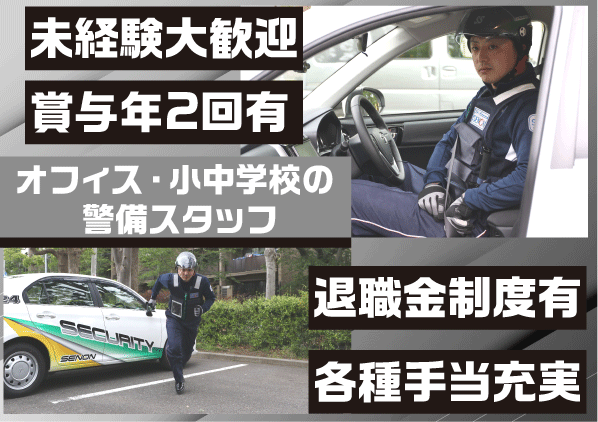 職種/仕事内容 | 仕事内容 ---------------- ✅経験は問いません! ✅異業種からの転職も大歓迎! 「人の役に立ちたい方」 「安全に関わる仕事がしたい方」 あなたのその想い、 セノンで活かしてみませんか? ---------------- 【お仕事内容】 オフィスや小中学校など、 契約先の施設内で警備業務をお任せします。 セノンの管制センターから連絡を受けたら、 駆け付け・確認いただくお仕事です! 異常がないかをしっかり点検し、 終了後はセンターに電話で報告! 現地への報告書提出で業務完了となります◎ \働きやすさもしっかり整えています/ ⭐昇給あり ⭐賞与あり(年2回) ⭐退職金制度あり(規定あり) ⭐資格手当・役職手当など手当も充実 |