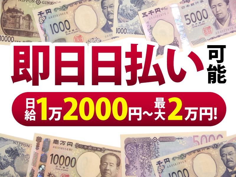 職種/仕事内容 | 仕事内容 【雇用形態】アルバイト・パート ==■求人のポイント■== ✅(1)即日日払い可能! 日給1万2000円~最大2万円! ✅(2)短期・単発・週1だけ・土日のみなど自由 ✅(3)現場の知識・経験ゼロでOKの軽作業 ✅(4)オープニング並み!20名以上積極採用! ――――――――――――― <仕事内容詳細> 【現場の職人さんの簡単なサポート・お手伝い】 現場の片付け・清掃・資材や道具運びなど ⭐工事など現場作業の実務や 難しい作業は一切なし! 道具を渡す、運ぶ、片付けなど簡単! ――――――――――――― \\ 現場について //  ̄ ̄ ̄ ̄ ̄V ̄ ̄ ̄ ̄ ̄ ✅東京23区の他、神奈川県・埼玉県 に現場があります♪ ✅直行直帰OK 【都内】 新宿区・豊島区・渋谷区・千代田区・ 板橋区・北区・足立区・葛飾区・ 荒川区・墨田区・台東区・江東区・ 江戸川区・大田区など 【埼玉県】 さいたま市・川口市・越谷市・ 草加市・八潮市など 【神奈川県】 横浜市・川崎市など ⭐自宅の近くで働きたいなど 勤務地はお気軽にご相談ください。 ――――――――――――― <事業内容>請負業 *。2023年9月設立の まだまだ新しい会社。* ――――――――――――― |